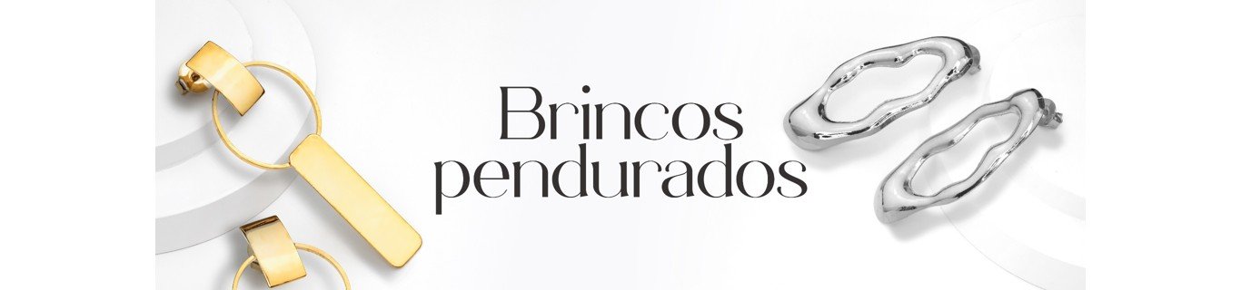BANHO DE OURO 18K Brinco Pendurado Banho de Ouro 18k com Base Lisa e Abas Vazadas em Tamanhos Diferentes