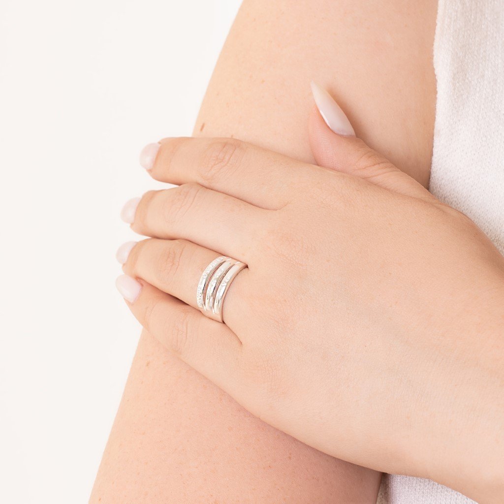 O acabamento liso e polido do banho de prata confere elegância discreta, tornando o anel ideal para o uso diário como símbolo de proteção, conexão espiritual e inspiração constante. O design limpo realça a mensagem, permitindo que ela seja o verdadeiro destaque da joia.