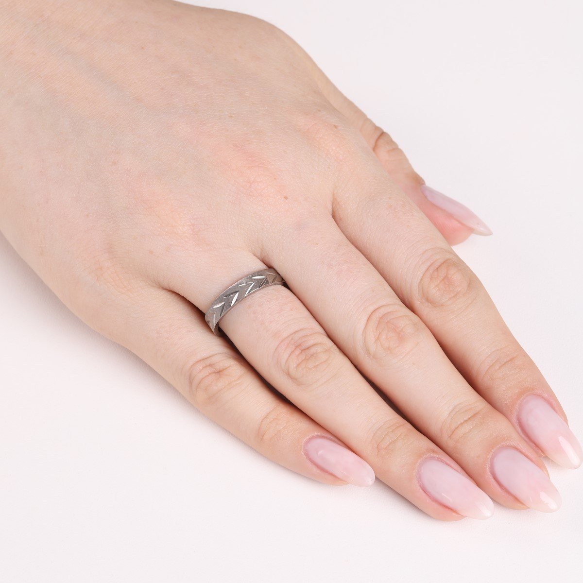 Anel de Aço Quadrado com Detalhes em Riscas Lixadas