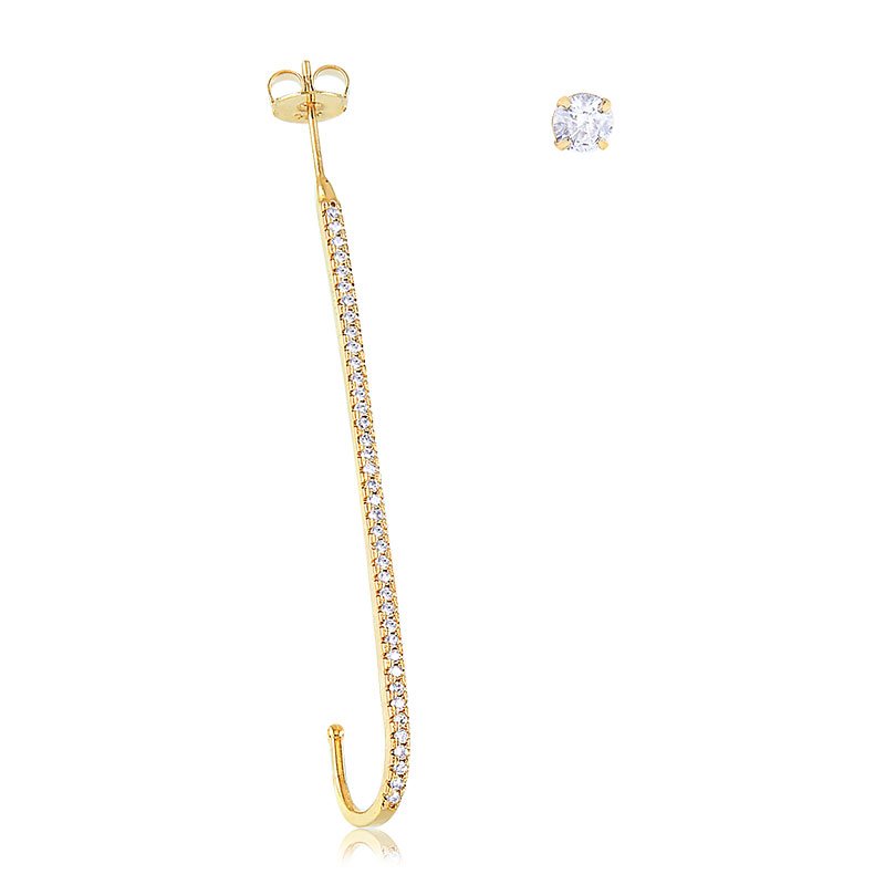 Brinco Banho de Ouro 18K em Formato de Alfinete Cravejado com Zircônia Ponto de Luz (6,5cm + 6mm)