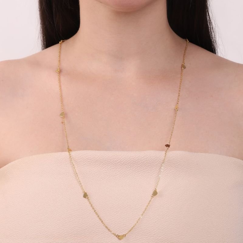 Colar Banho de Ouro 18K Elos 1x1 Chapado com Corações Lisos (80cm)