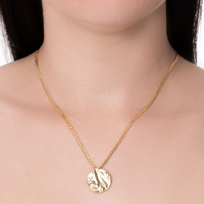 Estilo e autenticidade em cada detalhe! Este colar com banho de prata combina a delicadeza dos elos 1x1 com a força de um design contemporâneo: um pingente chapado em formato de círculo com acabamento amassado, que traz textura e movimento à peça.